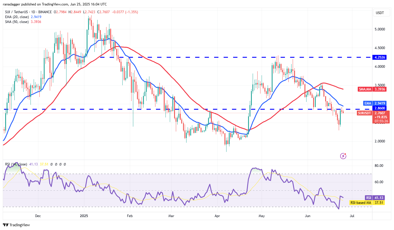 Sui (SUI) turned up sharply on Monday and reached the 20-day EMA ($2.94) on Tuesday, where the bears are posing a stiff challenge.