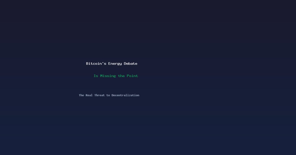 I’ll show you why Bitcoin energy consumption concerns are overblown, then reveal the actual vulnerabilities that could centralize Bitcoin permanently.