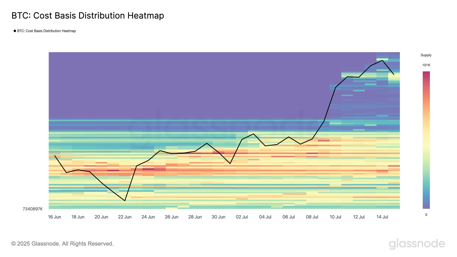Glassnode’s cost basis heatmap, meanwhile, shows that buyers “stepped in aggressively” during this week’s BTC price dip below $116,000.