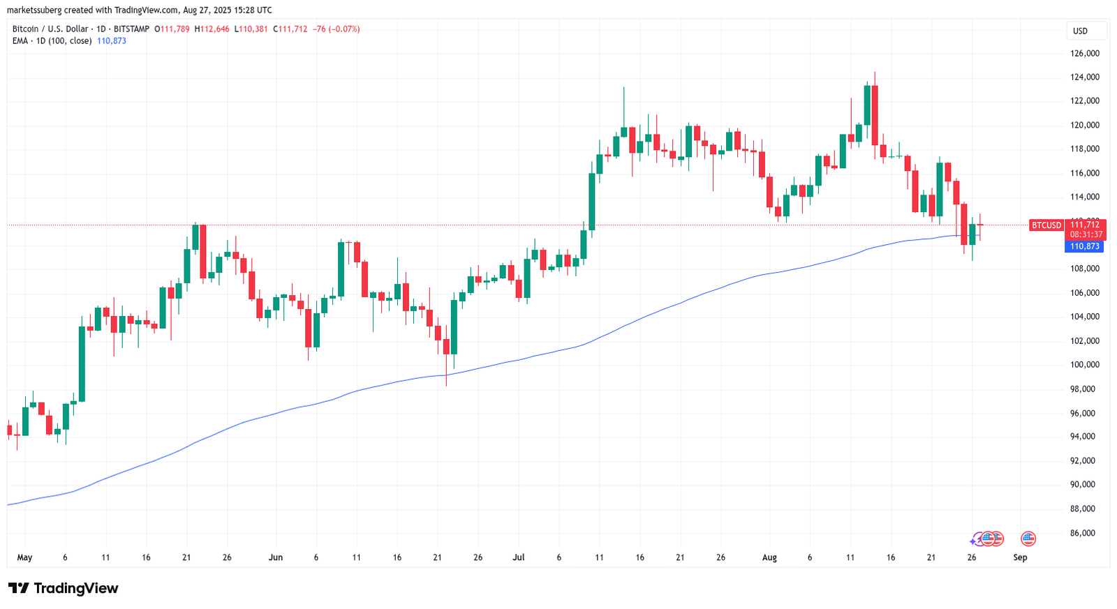 “$BTC has reclaimed its EMA-100 level,” popular trader BitBull wrote in a post on X, referring to the 100-day exponential moving average at $110,850.