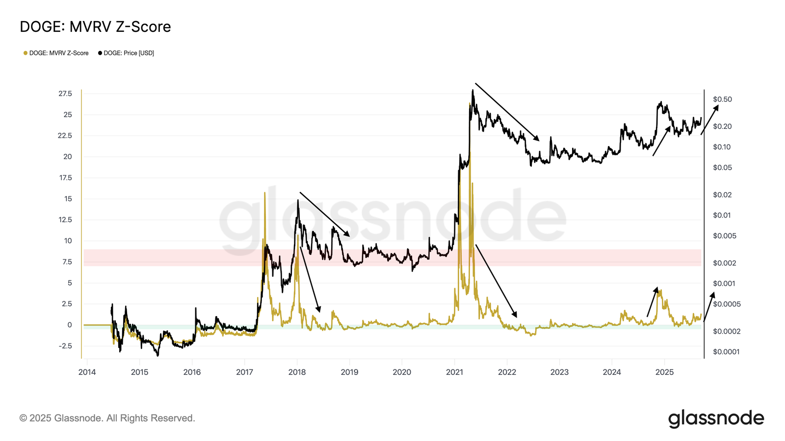 DOGE MVRV Z-Score vs. price chart. Source: Glassnode