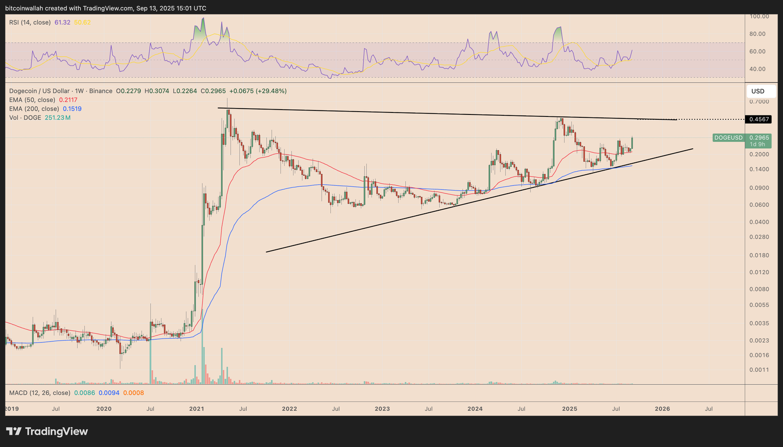 DOGE/USD weekly price chart. Source: TradingView