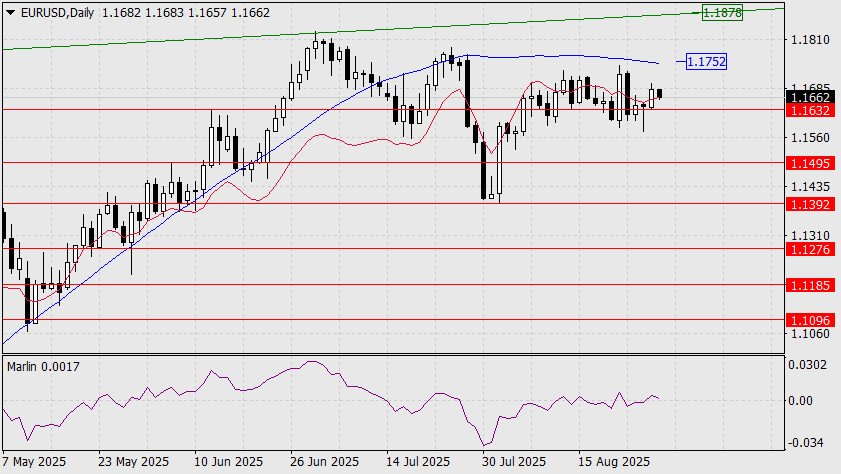 On Thursday, the euro rose by 45 pips. Formally, this rise can be seen as a continued risk-on move (S&P 500 +0.32%), but we are more inclined to interpret the euro’s behavior over the past two weeks as consolidation in anticipation of a Federal Reserve rate cut on September 17. Before that event, today will see the release of the Personal Consumption Expenditures Price Index, followed by employment data on September 5 and the CPI on September 11. Despite the